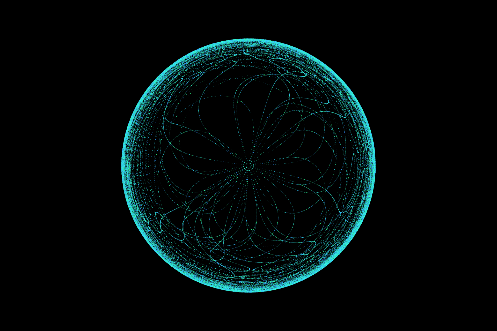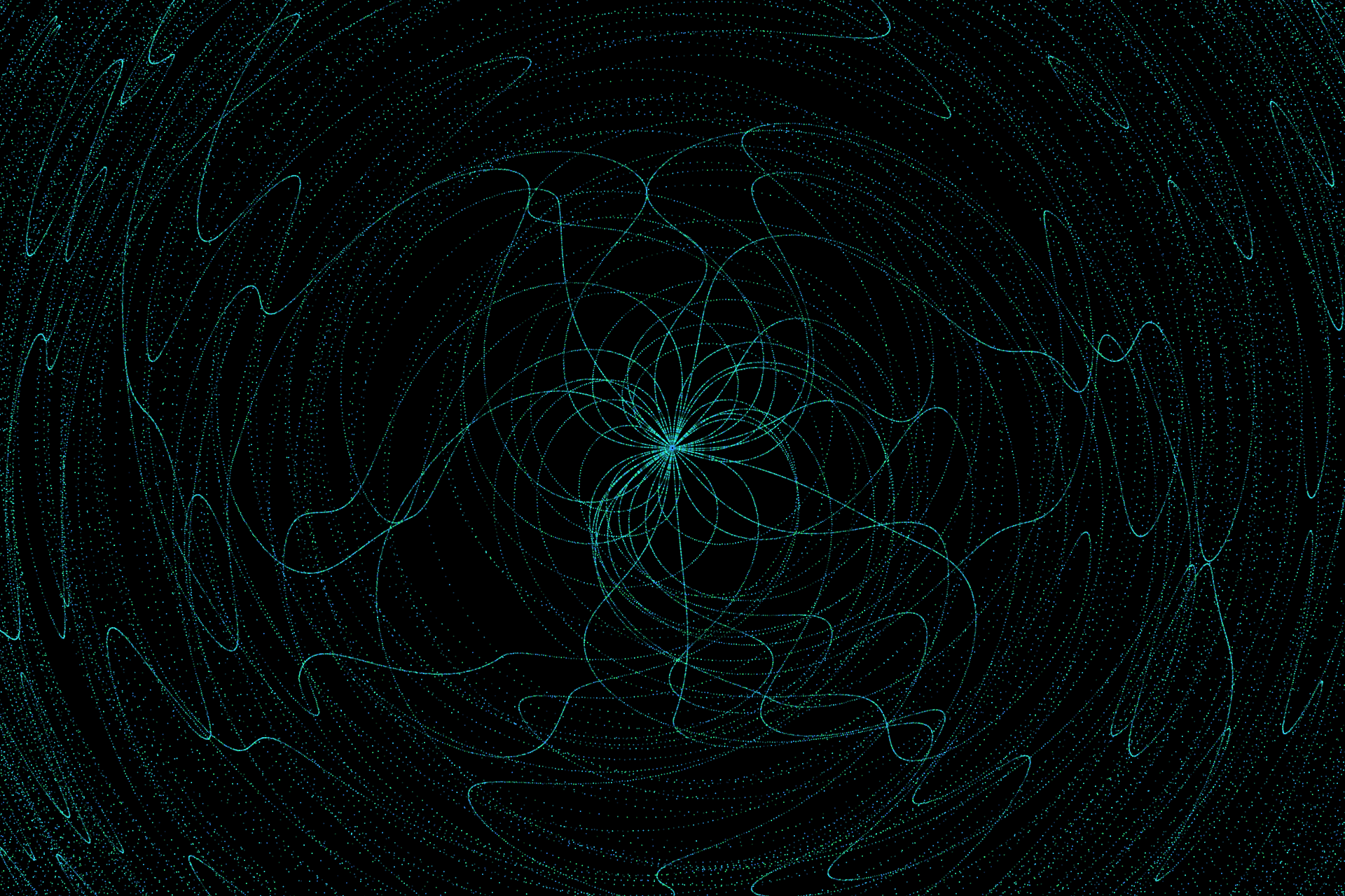 Dots being generated outwards from the center. Movement patterns based on